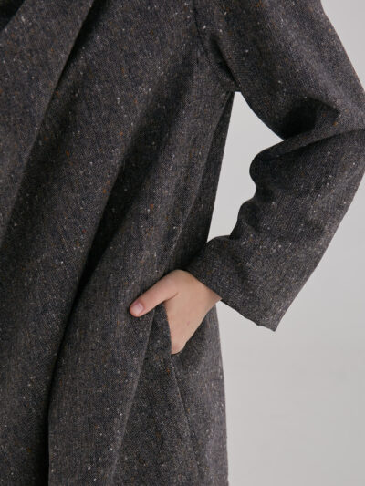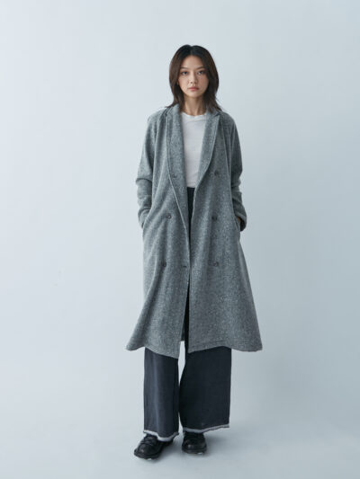 Wool Blend Long Coat with Lapel & Side Button Detail – Grey
