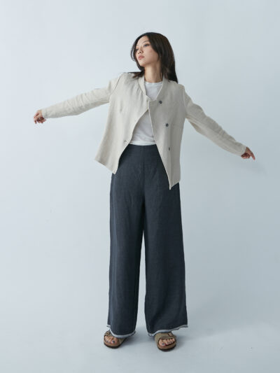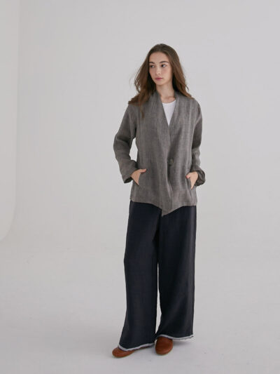 Collarless Single-Button Jacket – Plaid