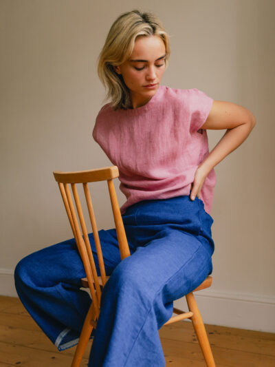 Cap-Sleeve Linen Top – Pink
