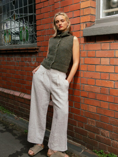 Button-Front Lightweight Wool Vest – Dark Green