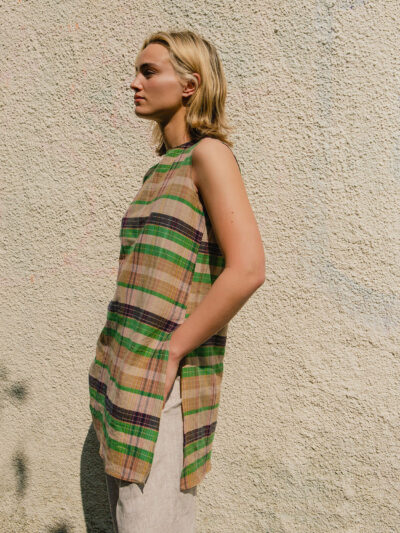 Long Side-Slit Vest – Check