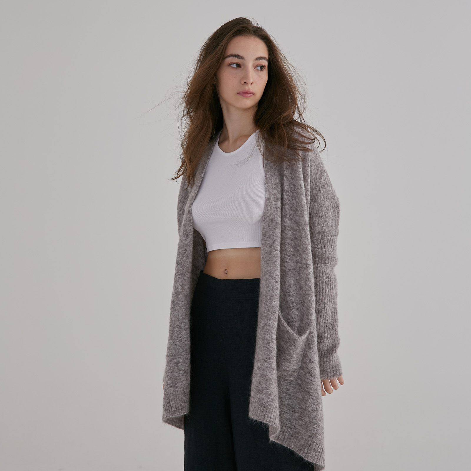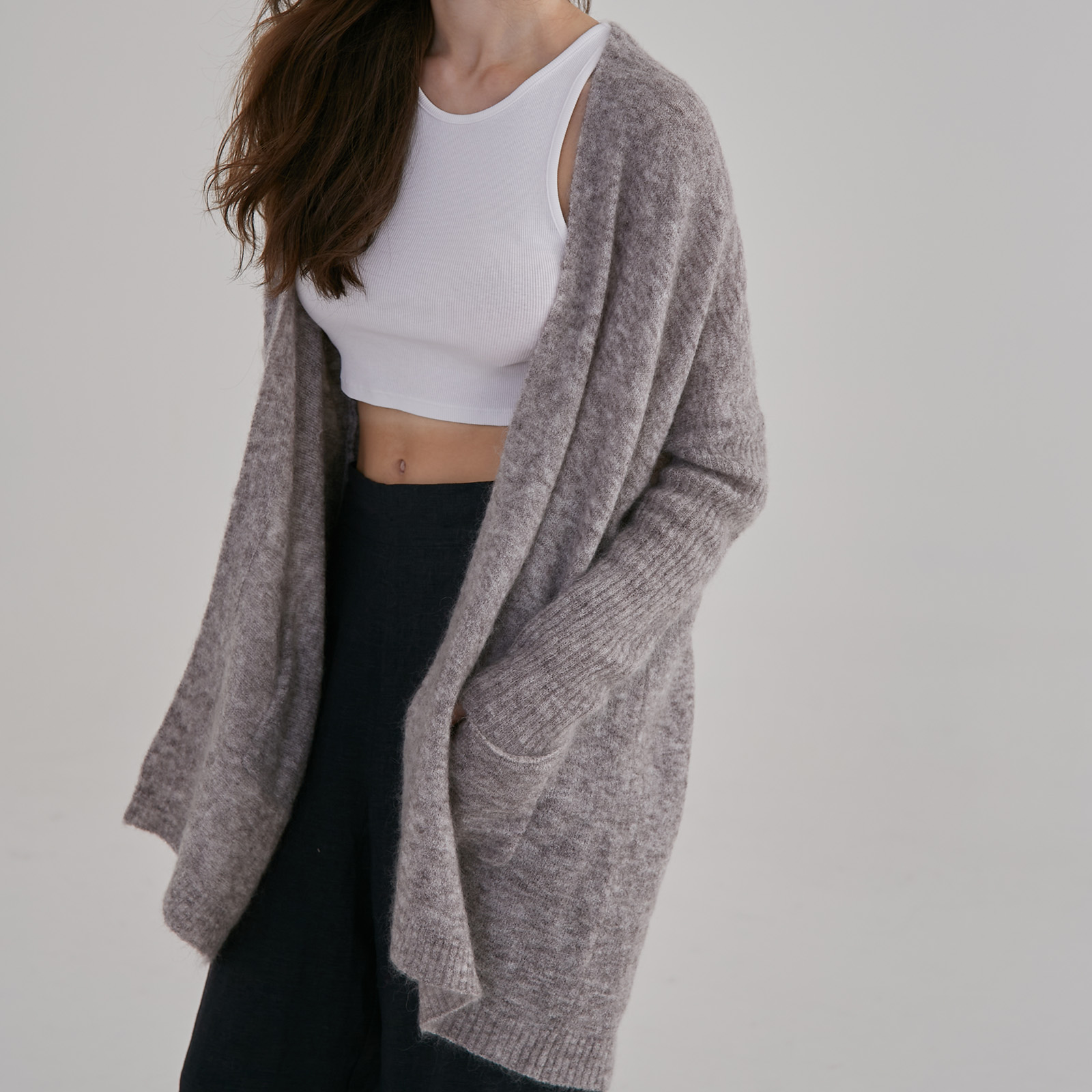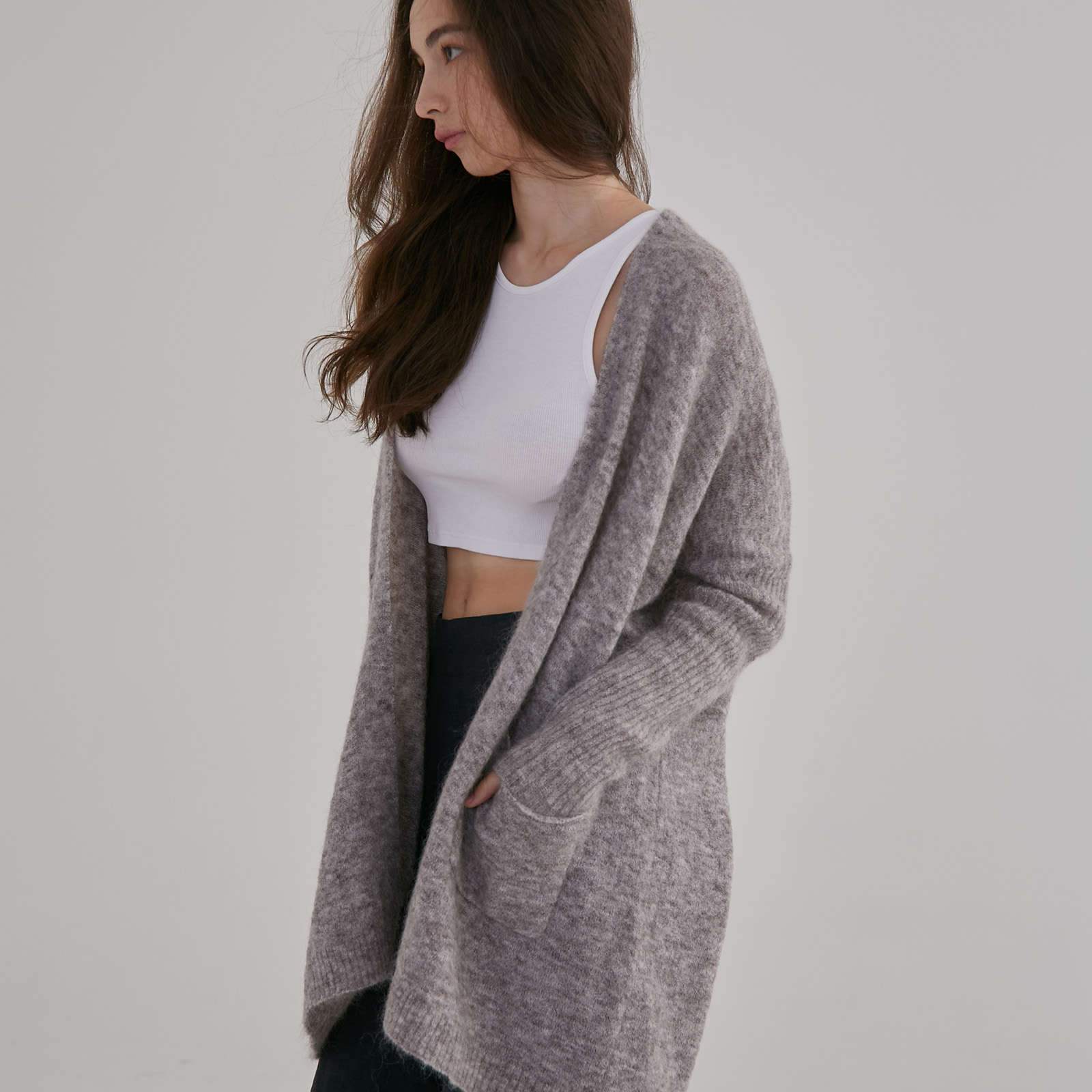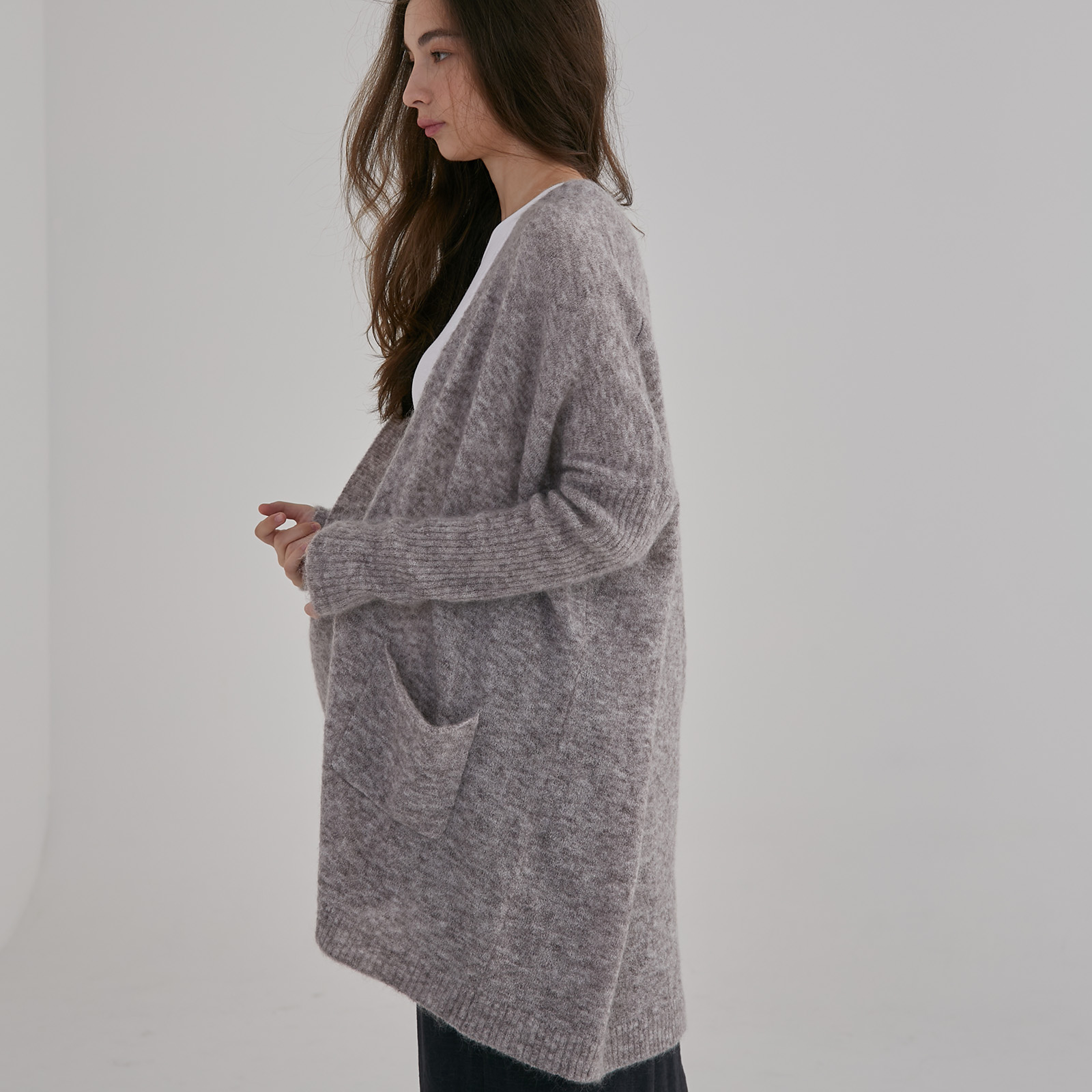This cardigan offers a neat shape with a relaxed fit, perfect for layering with your favourite outfits. The ribbed sleeves ensure practicality, making this versatile piece perfect for a cozy evening in or a day at the office.