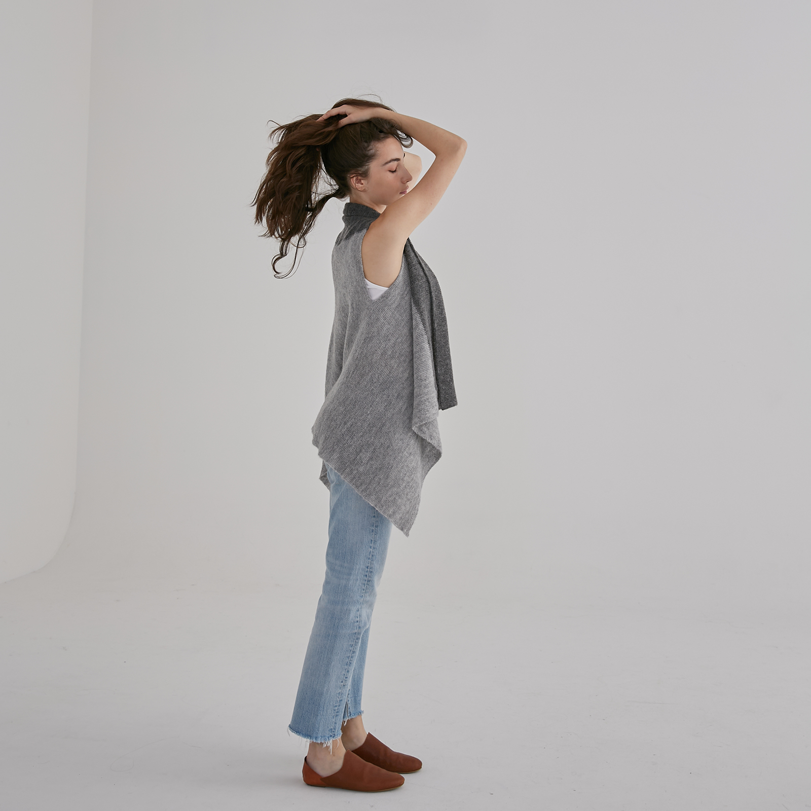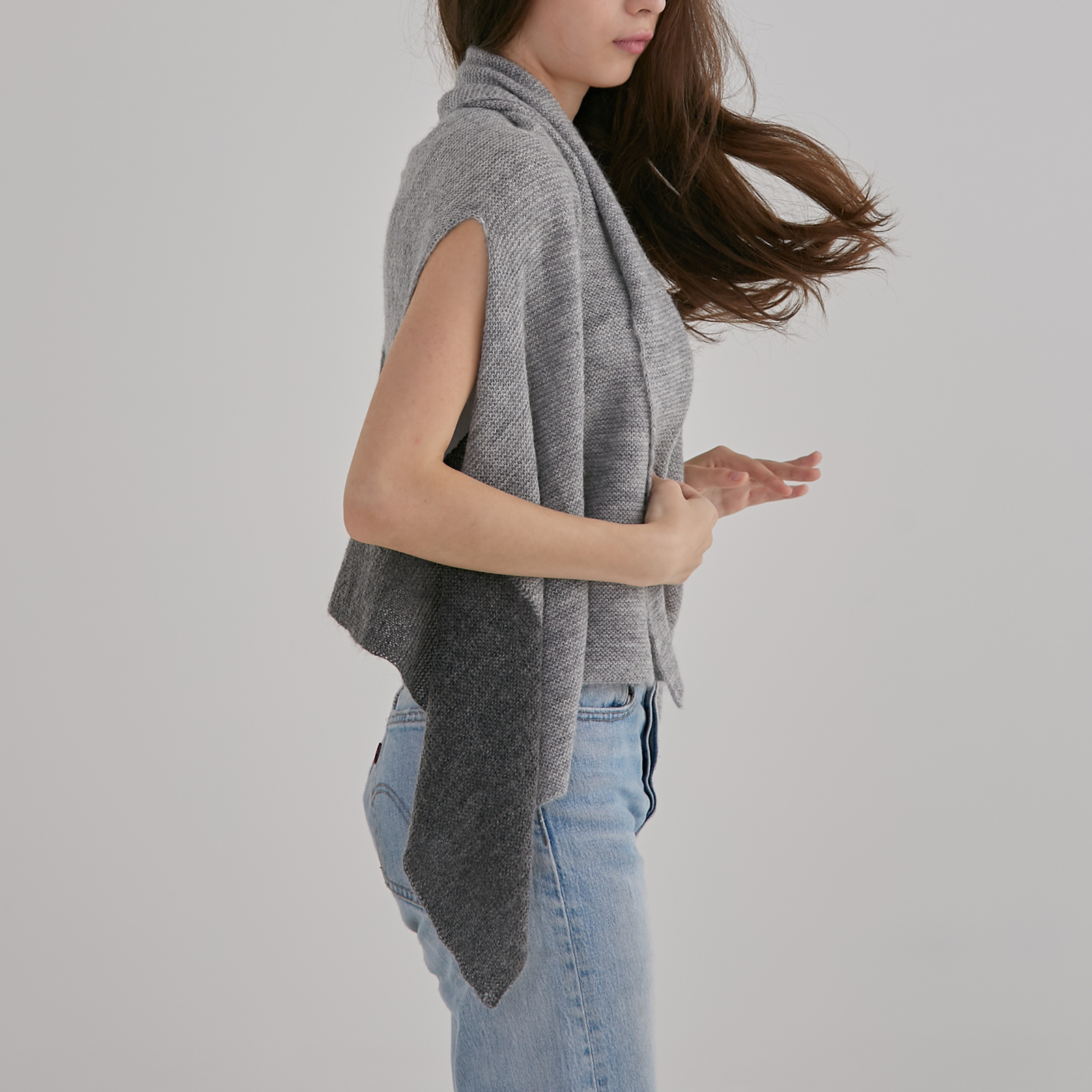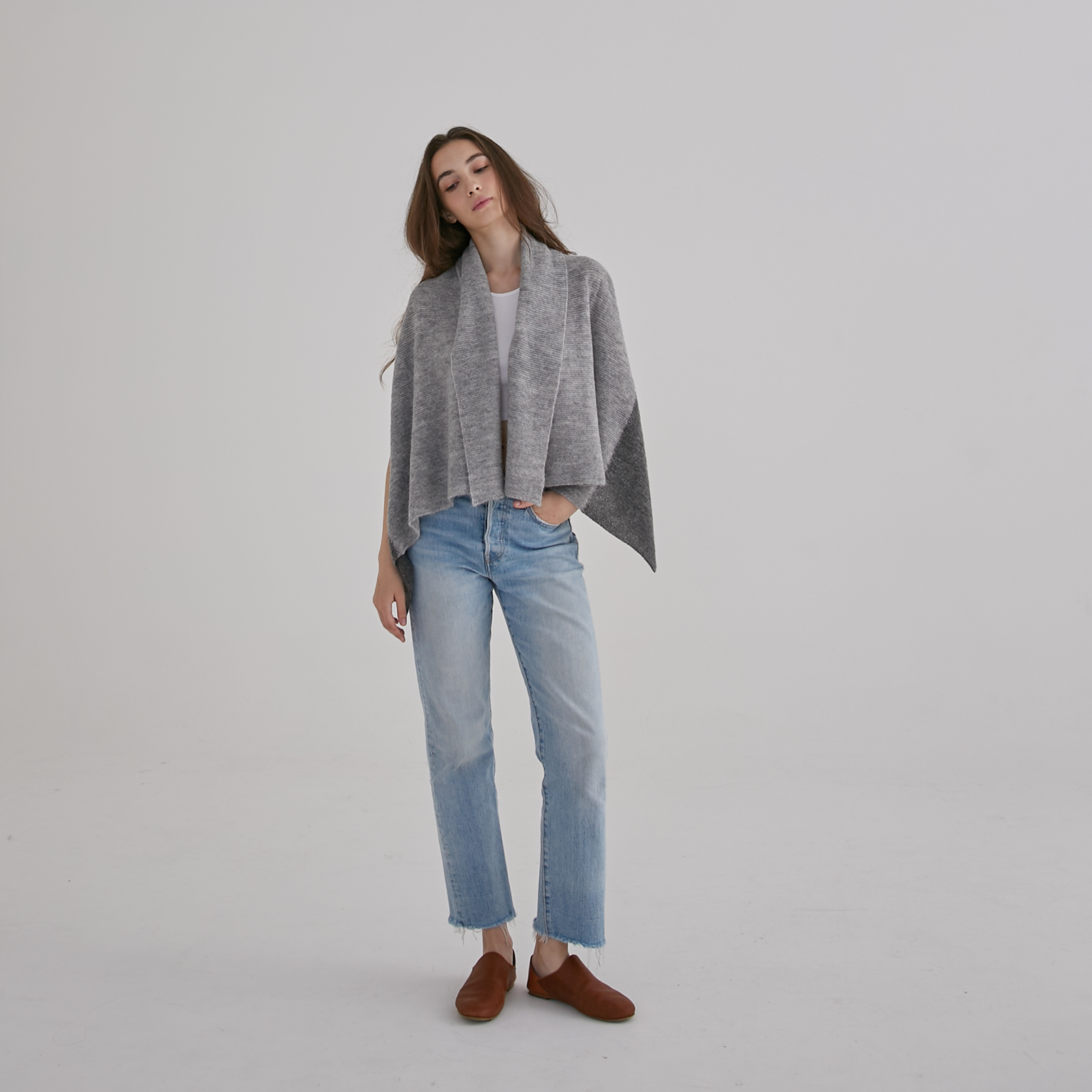Soft alpaca blend in two tones, this convertible shawl vest doubles as a cosy layer or scarf for effortless warmth and style.