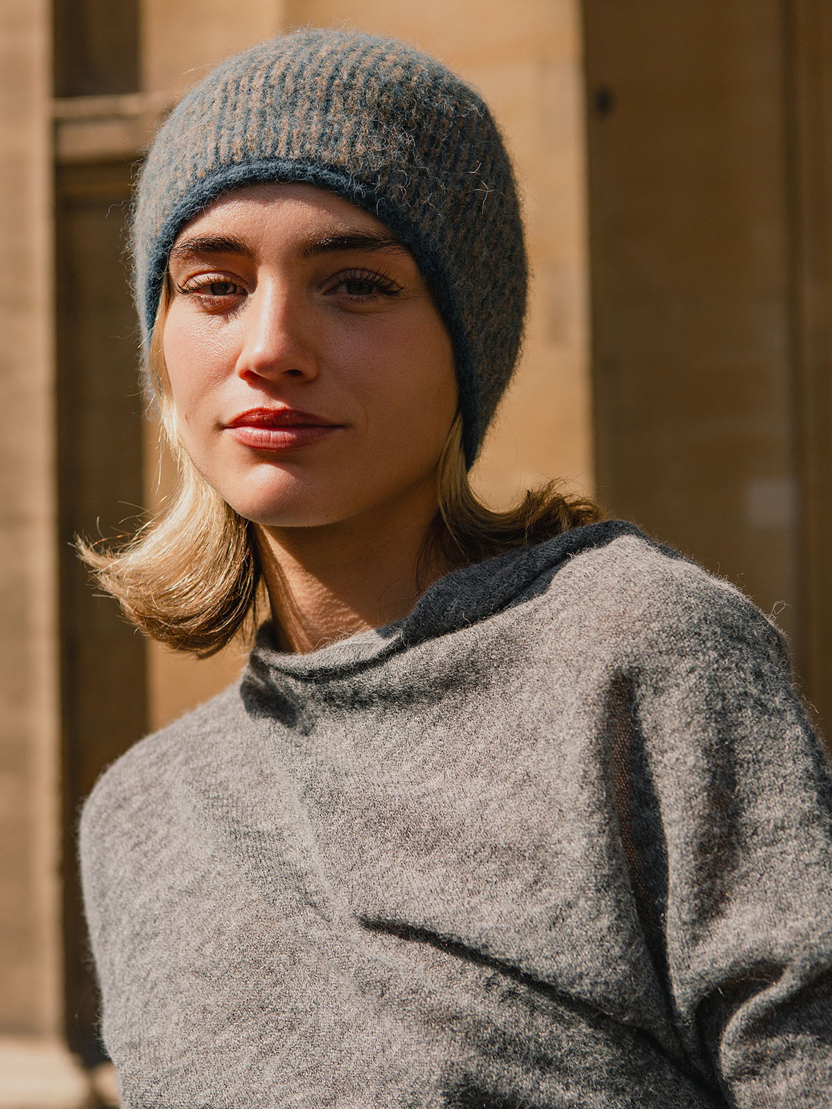 Stay warm in style with this striped alpaca beanie. Its classic colour‑block design and luxurious wool blend add a touch of effortless charm to any winter outfit.