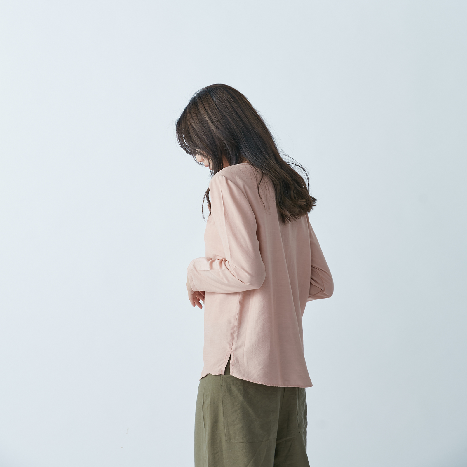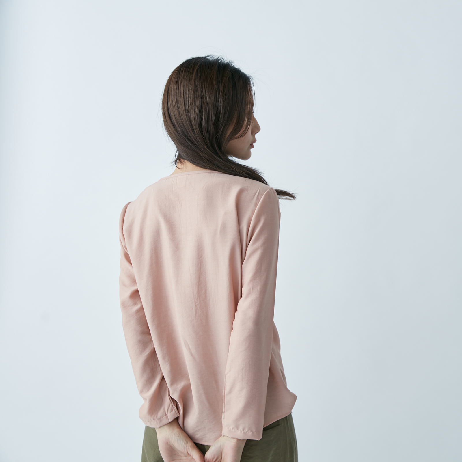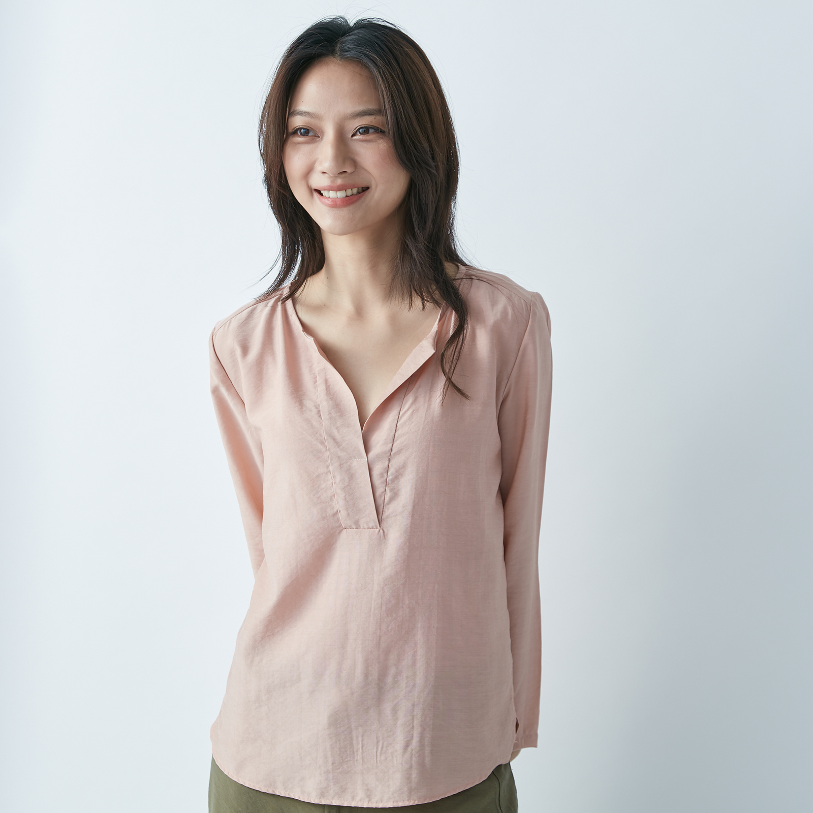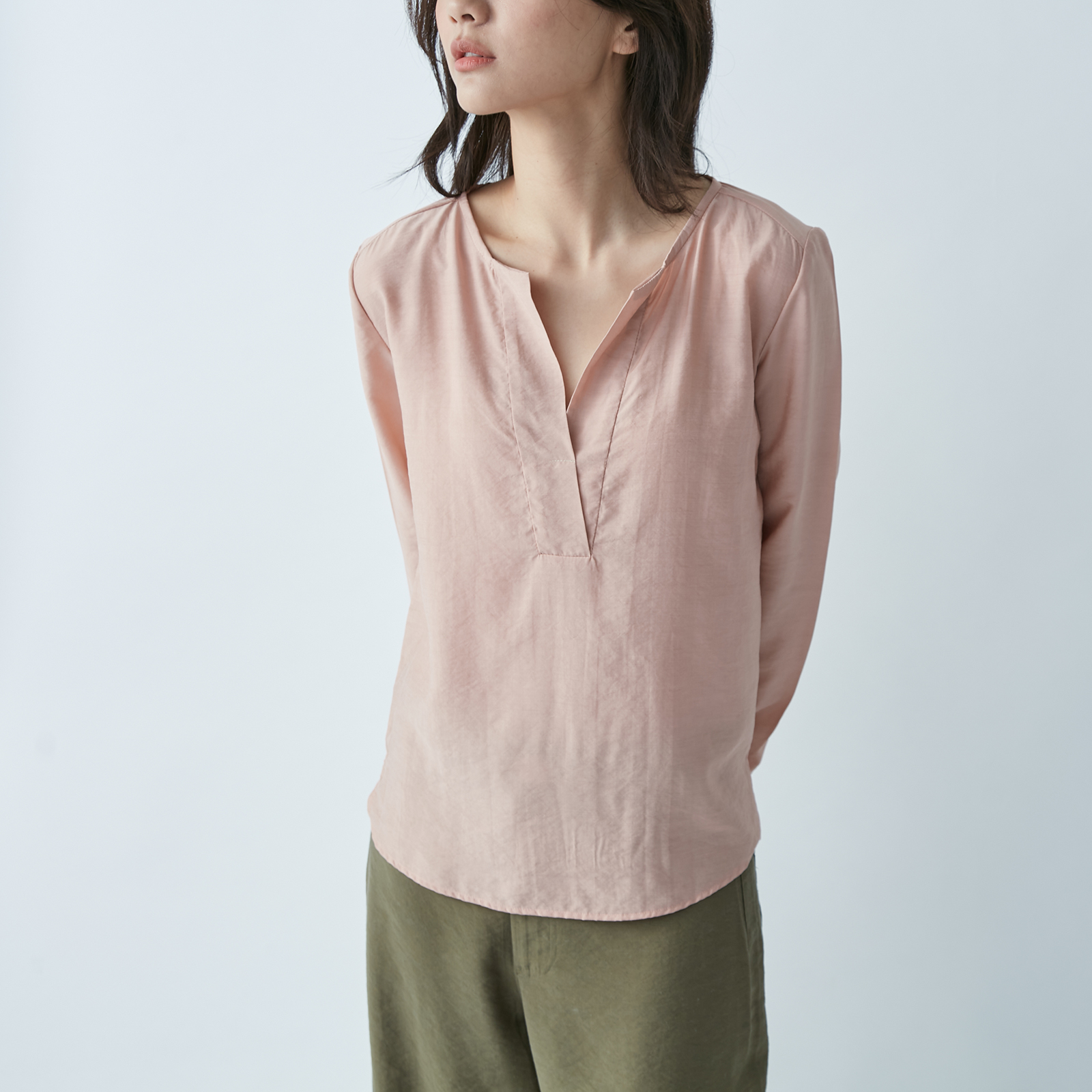 V‑Neck Long Sleeve Top – Quiet Pink